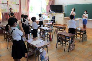 中島小学校では、28日からの3日間、校門周辺での朝のあいさつ運動を実施しました。