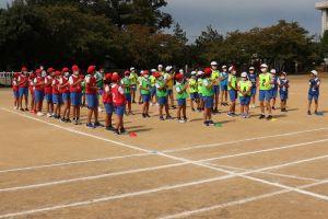 中島小では、赤団と黄団で対抗します。