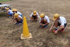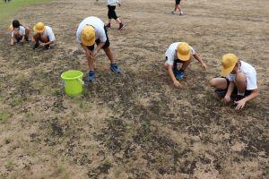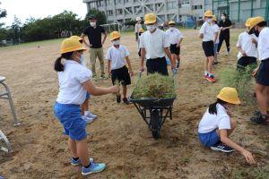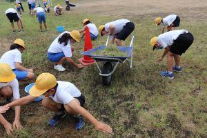 10月の運動会に向けて、全校児童で協力して運動場をきれいにします。