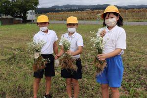 春に4,5年生が植えた苗が大きく育ち、今日、刈り取ります。
