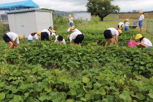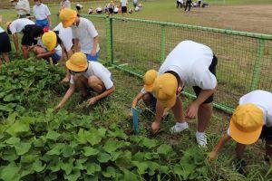 今日は、昼休みのあとの掃除の時間に、縦割りチームで「さつまいも畑」と「運動場」の草むしりを行いました。