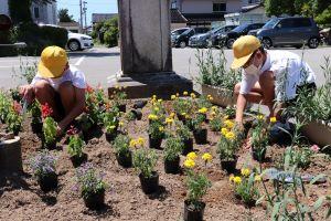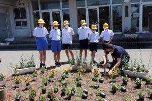 今日は、環境委員会の6名が、玄関前花壇に花の苗植えを行いました。