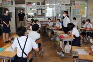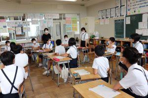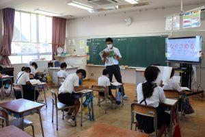 今日は、教育委員会や町内の学校から、たくさんの先生方が中島小学校の授業の様子を見においでました。