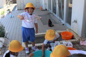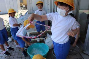 いろいろ工夫しながら、子どもたちは、皆、楽しそうにシャボン玉づくりに挑戦していました。