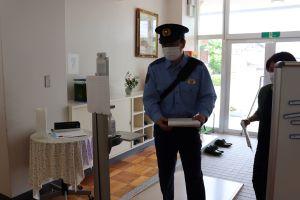 通報を受けて、男性職員が刺股を持ち現場に急行します。