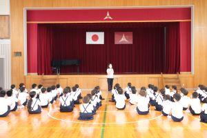 先生の話をしっかり目と耳と心で聞いています。聞く態度が花丸!