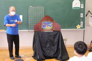 今日は、1,2年生の子ども達がお待ちかねの「おもしろ紙芝居」がありました。