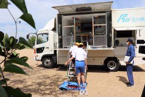 今日は、地震災害に対する意識を高め、万が一に備えることを目的に、地震の揺れを疑似体験しました。