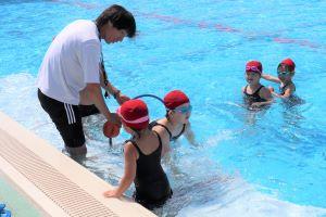 こちらは、先生に手をもってもらい、伏し浮きの練習。