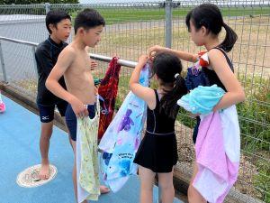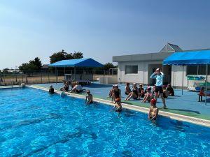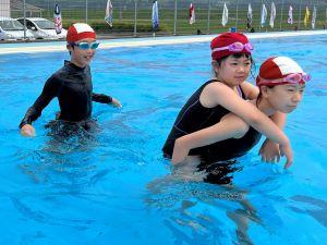 今年度初めての水泳授業で、子どもたちは元気に泳いでいました。
