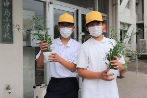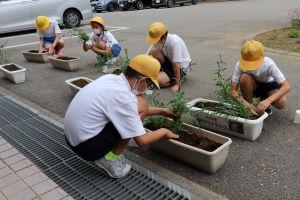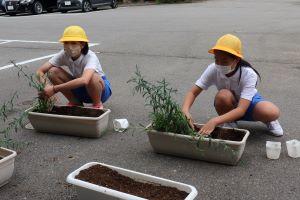 今日は、お昼休みに環境委員さんが、町からいただいた町花「かわらなでしこ」の苗をプランターに植えました。