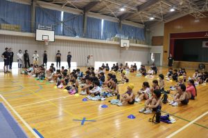 夏休みの生活を振り返り、安全に過ごすことができたか地区ごとに集まって話し合いました。