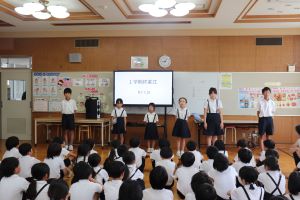 代表の人は、自分自身の1学期をふり返り、がんばったことやできるようになったこと、高学年としてがんばったことを堂々と話ました。