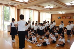 しっかりと話を聞いている姿を見て、2学期への意欲を感じました。