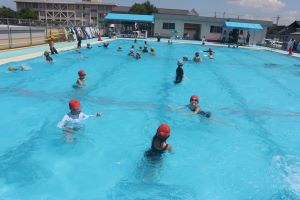 5.6年生のプール当番と保護者の見守り、先生の当番により行っています。