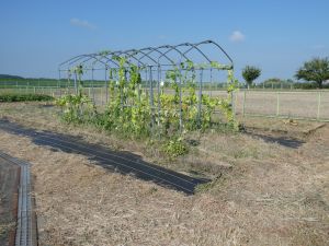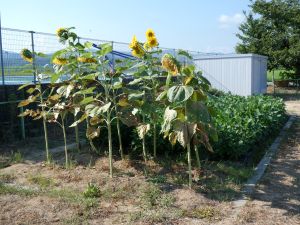 暑さに負けず、へちまやさつまいも、ひまわりも元気です。