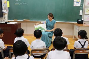 「地雷じゃなくて花をください」の絵本は少し難しいところがありましたが、解説を入れながら進めてくださり、子どもたちはしっかり聞いていました。