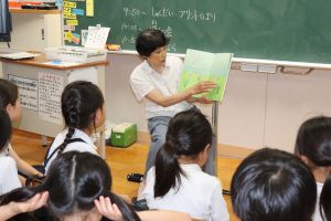 2年生は、中庄和子さんに読み聞かせと小さい頃のお話を聞かせてもらいました。