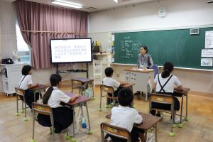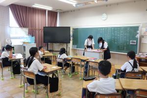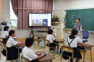 6年生は、紺谷洋子さんに来ていただきました。小2の時、空襲により避難し、家族がバラバラになったことや戦争は、物や人を壊すだけでなく、人の心も壊すことなど、体験したことを伝えてくださいました。また、平和な世が続くように、自分にできることを考えてほしいともお話されました。