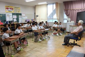 5年生は、亀田勇夫さんに戦時中のくらしや体験を話していただきました。