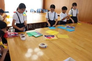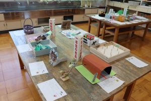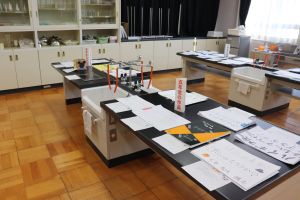理科室と図工室で各学年の夏休みに取り組んだ作品の展示の準備ができました。