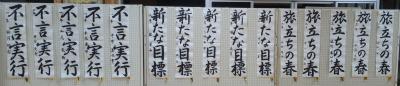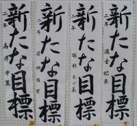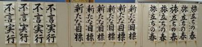 1年生は「不言実行」2年生は「新たな目標」3年生は「旅立ちの春」を題材としました。