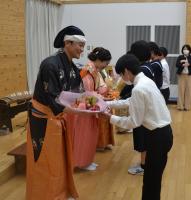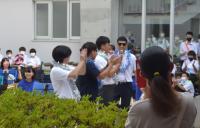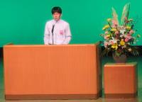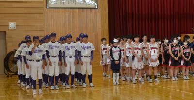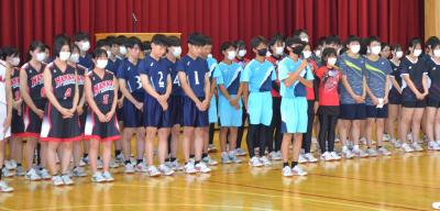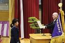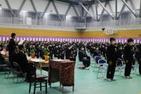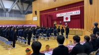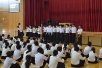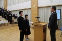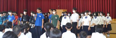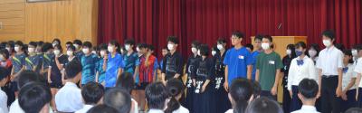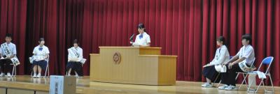 してくれました。その後、誓いの ことばを唱和し、 式を終えました。また、現3年生の生徒会役員の言葉をビデオメッ