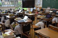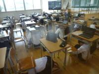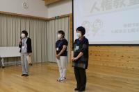 7月12日(火)3名の人権擁護委員の方々をお招きして1年生対象に 人権講話を行いました。今回は、新型コロナ感染症予防対策として 別室からリモートでお話をしていただきました。各教室で映像や 「人権の種」(詩)を視聴し、人権を考える機会としました。 |