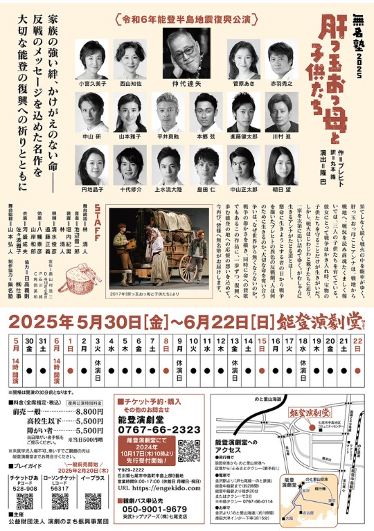 〇すでにチケットを購入済みの方でこの案内からの申し込み希望の方は、お手数ですが一度能登演劇堂(TEL: 0767-66-2323)までお問い合わせください。