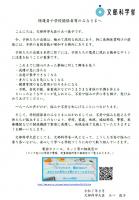 この度、文部科学大臣より、全国の保護者・学校関係者等へ向けたメッセージが送付されましたので、別添の通りお知らせいたします。