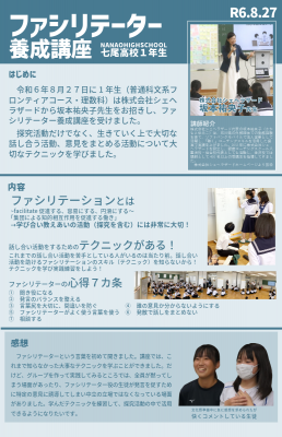 この度、普通科文系フロンティアコース・理数科の1年生対象とした「ファシリテーター養成講座②(応用編)」(課題研究BⅠ、自然科学研究Ⅰ)の公開授業を行います。