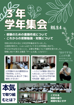 令和6年9月4日に3年生学年集会をしました。