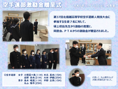 2023年11月17日 08時10分空手道部激励金贈呈式