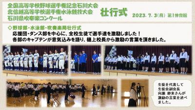 樋上校長先生から本校から北信越大会へ出場する選手たちへ、