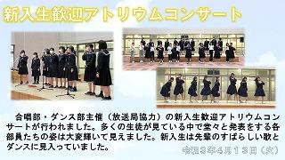 合唱部・ダンス部主催(放送局協力)の新入生歓迎アトリウムコンサートが行われました。多くの生徒が見ている中で堂々と発表をする各部員たちの姿は大変輝いて見えました。新入生は先輩のすばらしい歌とダンスに見入っていました。