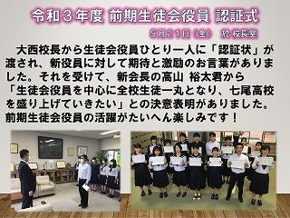 「生徒会役員を中心に全校生徒一丸となり、七尾高校を盛り上げていきたい」との決意表明がありました。前期生徒会役員の活躍がたいへん楽しみです!