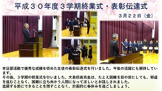 その後、3学期の終業式を行いました。大島校長先生は、たとえ困難を目の前にしても、邪道を進むことなく、困難に立ち向かう人間になってほしいとお話しされました。