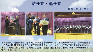 本日離任式・退任式を行いました。卒業生も多数駆けつけ、生徒たちはお世話になった先生方との思い出を振り返りながら、先生方の最後のメッセージをしっかりと受け止めていました。