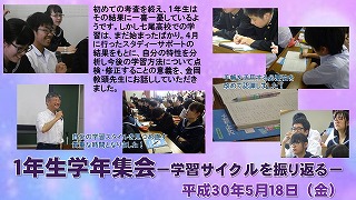 4月に行ったスタディーサポートの結果をもとに、自分の特性を分析し今後の学習方法について点検・修正することの意義を、金岡教頭先生にお話ししていただきました。