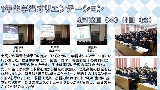 七高での学習を効果的に進めていくために、学習オリエンテーションを行いました。12日午前中には、国語・数学・英語表現Ⅰの教科担当の先生方が予習の仕方を伝え、生徒は実際に予習の実践を行いました。午後には実際に予習を活かし授業に参加し、七尾高校の授業を初体験しました。13日は6限目にコミュニケーション英語Ⅰのオリエンテーションを行いました。予習→授業→復習の流れはこれからの生活の基本となります。自身の生活スケジュールをしっかりと管理し、毎日欠かさず取り組みましょう!