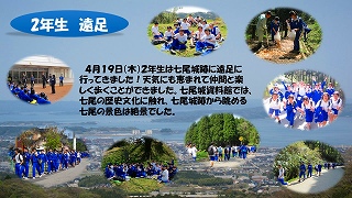 4月19日(木)2年生は七尾城跡に遠足に行ってきました!天気にも恵まれて仲間と楽しく歩くことができました。七尾城資料館では、七尾の歴史文化に触れ、七尾城跡から眺める七尾の景色は絶景でした。
