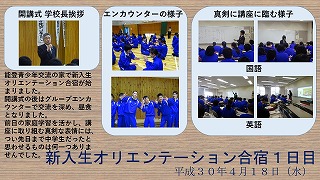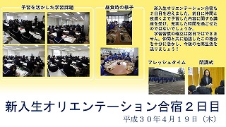 新入生オリエンテーション合宿も2日目を迎えました。前日に仲間と夜遅くまで予習した内容に関する講座を受け、充実した時間を過ごせたのではないでしょうか。