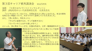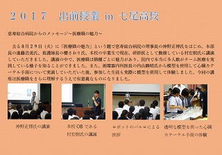 2017年10月18日 18時34分去る8月29日(火)に「医療職の魅力」という題で恵寿総合病院の理事長の神野正博氏をはじめ、本部長の進藤浩美氏、看護師長の櫻さおり氏、本校の卒業生で現在、研修医として勤務している村宏樹氏に講演していただきました。