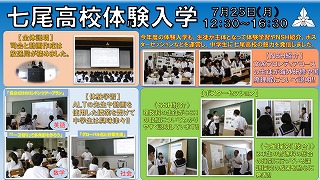 7月25日(月)に七尾高校にて体験入学が行われました。