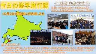 2016年10月11日 16時41分 3日目は、小樽・札幌自主研修と北海道大学見学、夜には藻岩山夜景観賞とレクリエーションを行いました。班別自主研修では、生徒たちは自分たちが考えたプランで小樽・札幌観光を楽しみました。レクリエーションでは、生徒たちが自ら企画・運営して行われ、ホームや学年の絆も深まり、楽しいひとときを過ごしました!