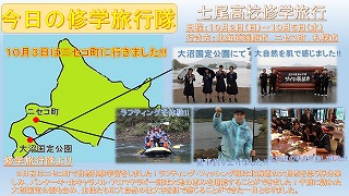 2日目はニセコ町で自然体験学習をしました。ラフティング・フィッシング班は北海道の大自然を思う存分楽しみ、パンケーキ・生キャラメル・アロマテラピー班は大地の恵みを堪能することができました。午前に訪れた大沼国定公園を含め、生徒たちは大自然の壮大さを肌で感じることができた一日となりました。