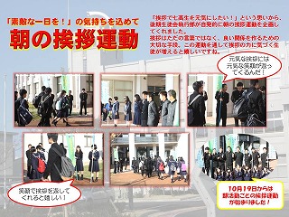 10月13日から16日まで生徒会執行部による朝の挨拶運動が行われました。発足したばかりの後期生徒会執行部が七高を元気にしたいと企画してくれました。