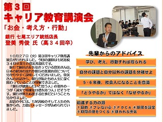 10月27日(火)、銀行から講師をお招きして、第3回キャリア教育講演会を実施しました。