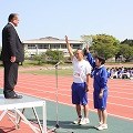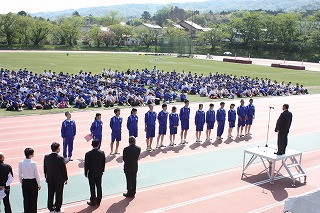 陸上競技大会の開会に先立って、前期生徒会役員の認証式が行われました。