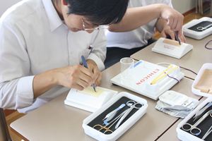 救急車の中を見せていただいたり、メスや針などを使ってオペ体験をしました。これをきっかけに多くの職業を知り、可能性を増やしていってほしいと思います。